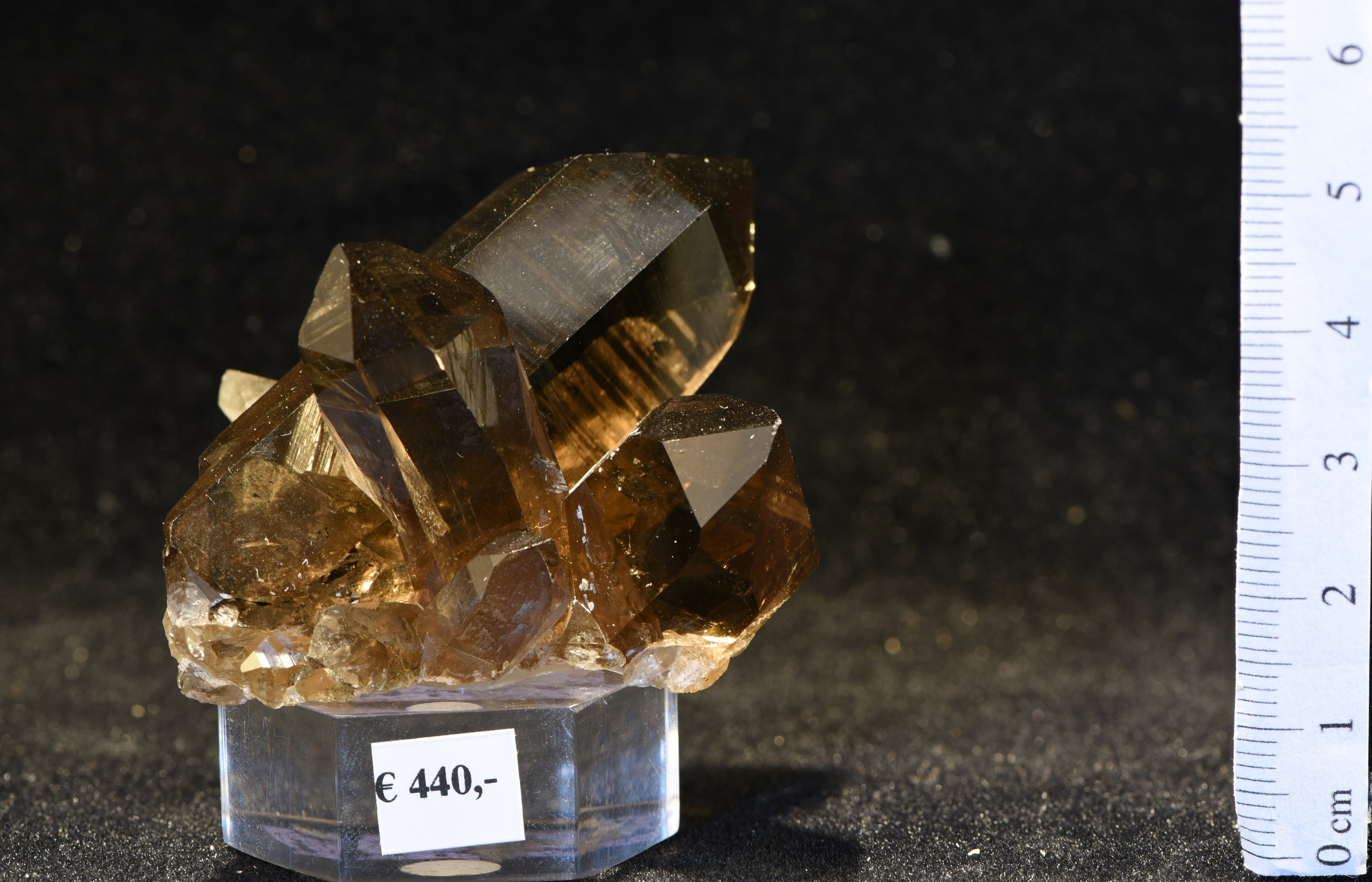 Auf dieser Stufe sind einige Rauchquarze ineinander verwachsen, was einen wunderschönen Aufbau ergibt. Die längste Fläche misst ca. 5 cm und die Rauchquarze haben einen unglaublichen Glanz und sind sehr klar.