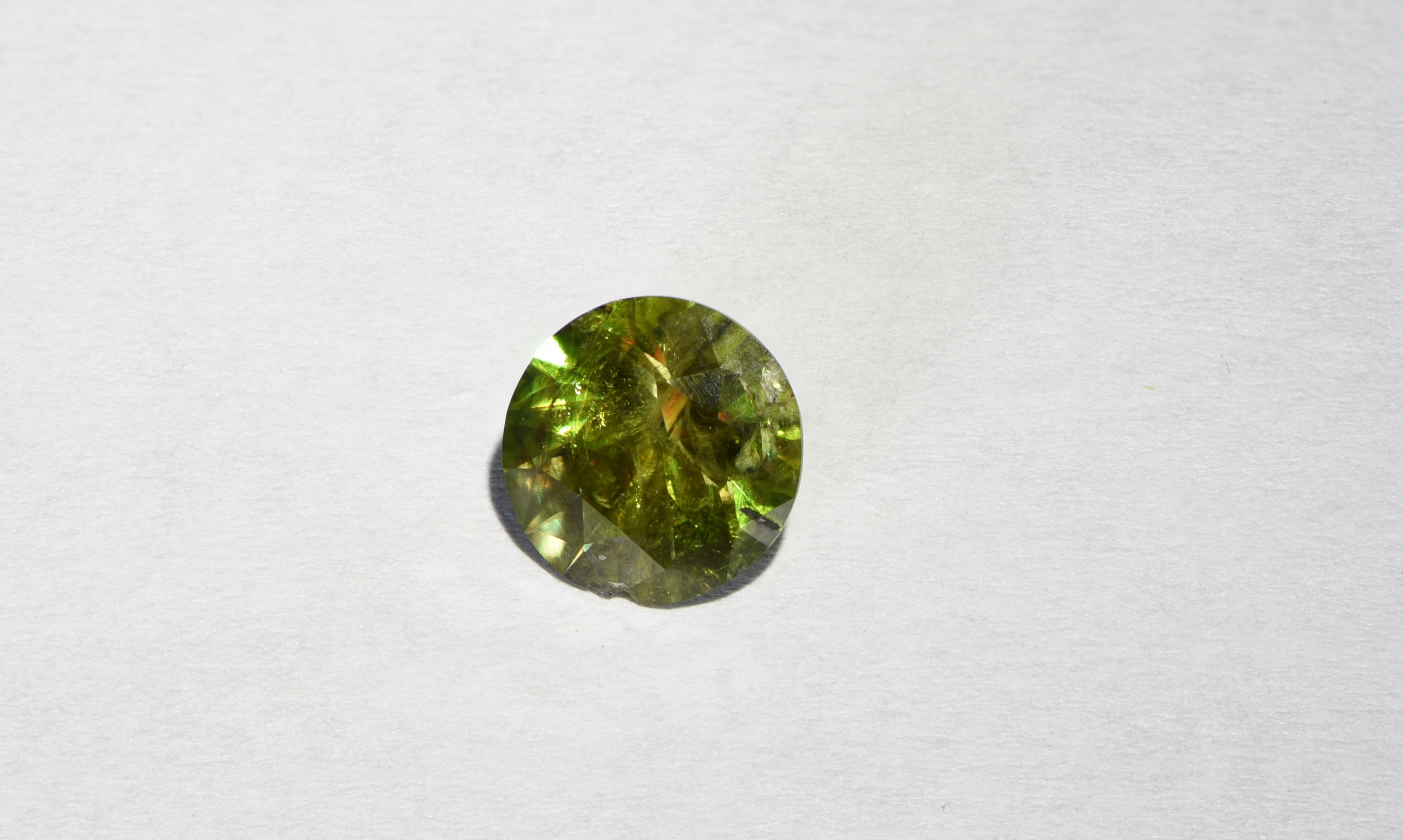 Ein facettierter Tiatnit-Kristall (Sphen). Dieser Stein wäre ideal zur Verarbeitung in ein Schmuckstück oder eben als Sammelobjekt geeignet.
