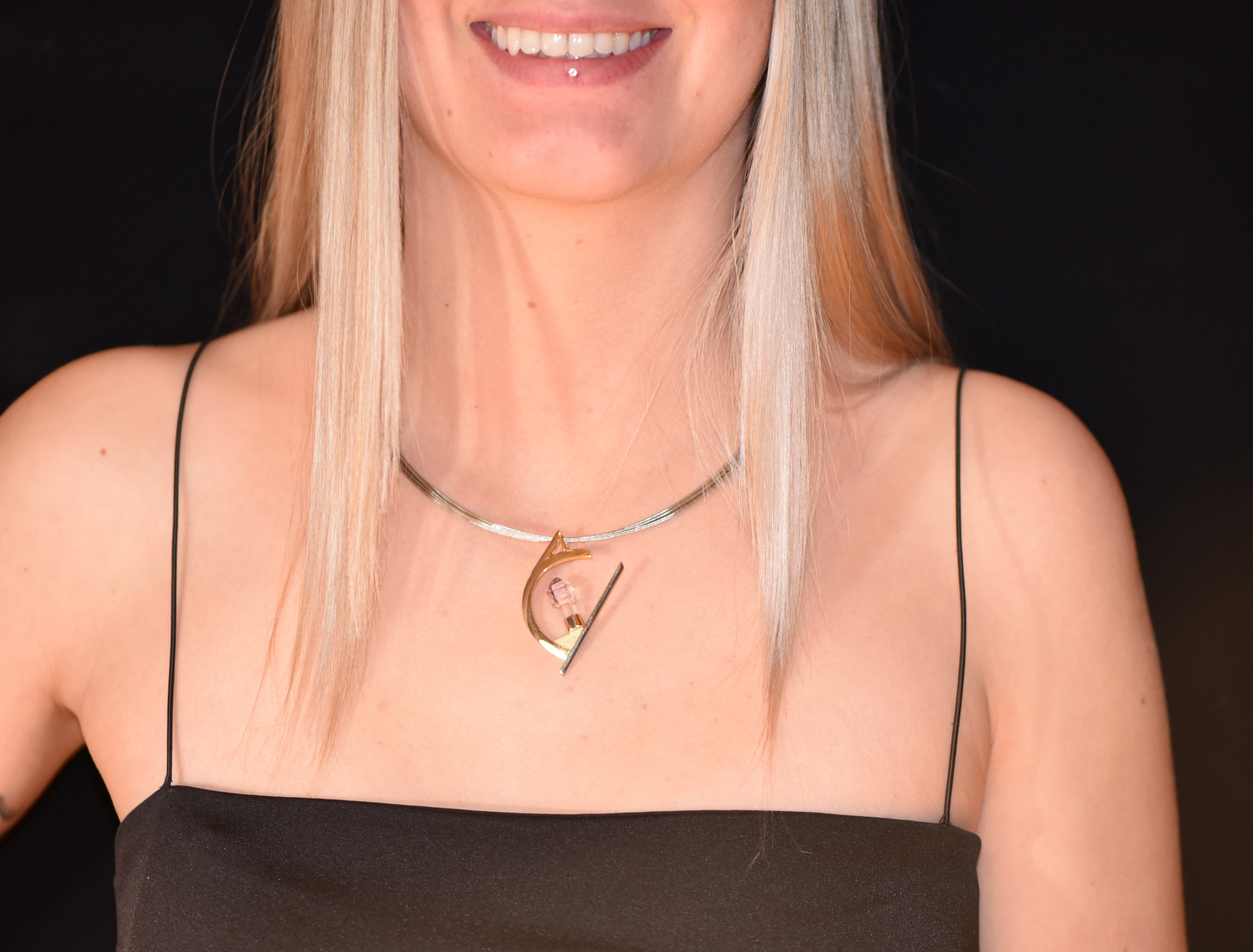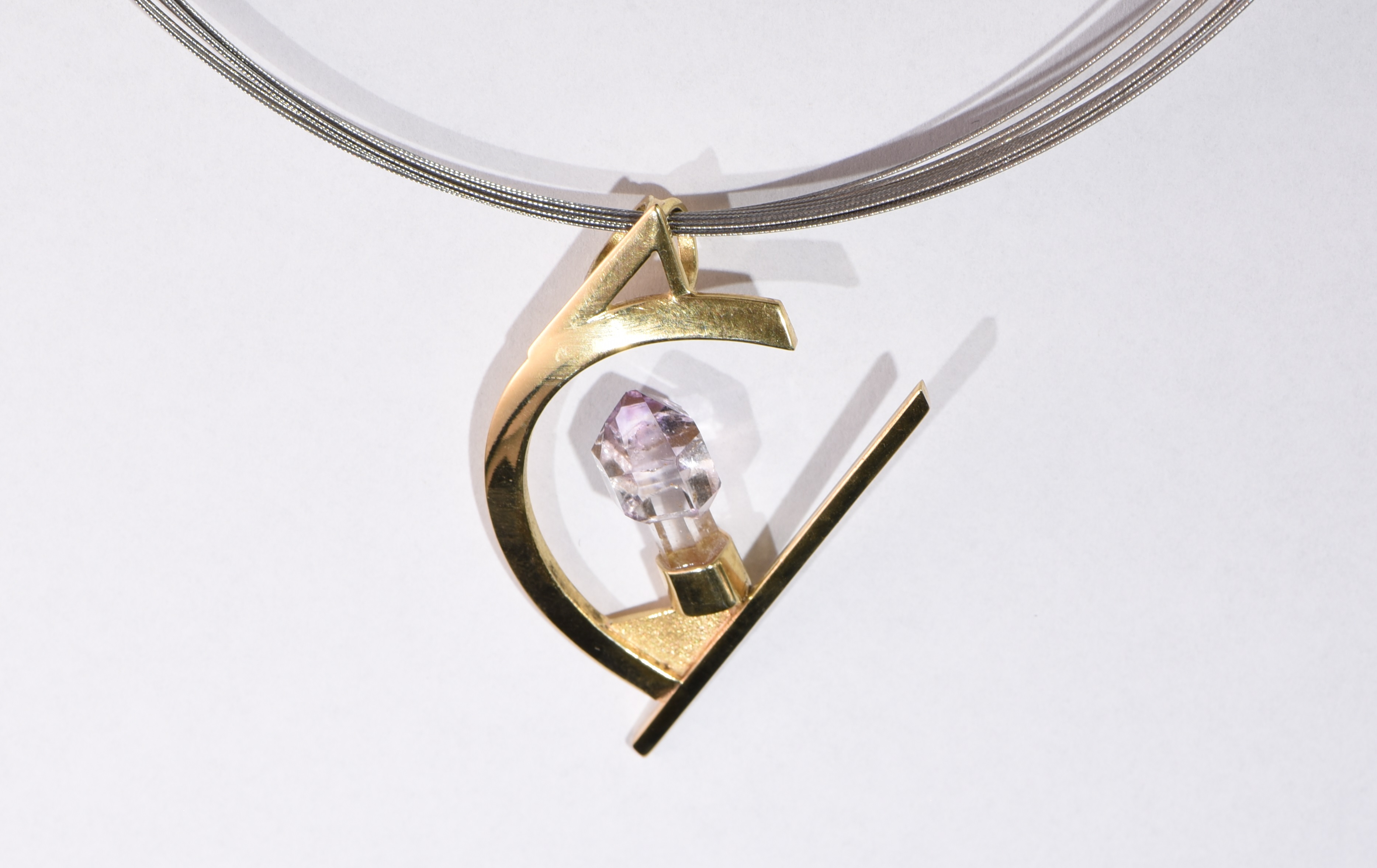 Ein Szepterquarz, der an der Spitze leicht lila wird (Amethyst) - eine echte Seltenheit in Österreich! Der Stein ist in Gold eingefasst und der sichtbare Teil des Kristalls ist 1,5 cm lang..