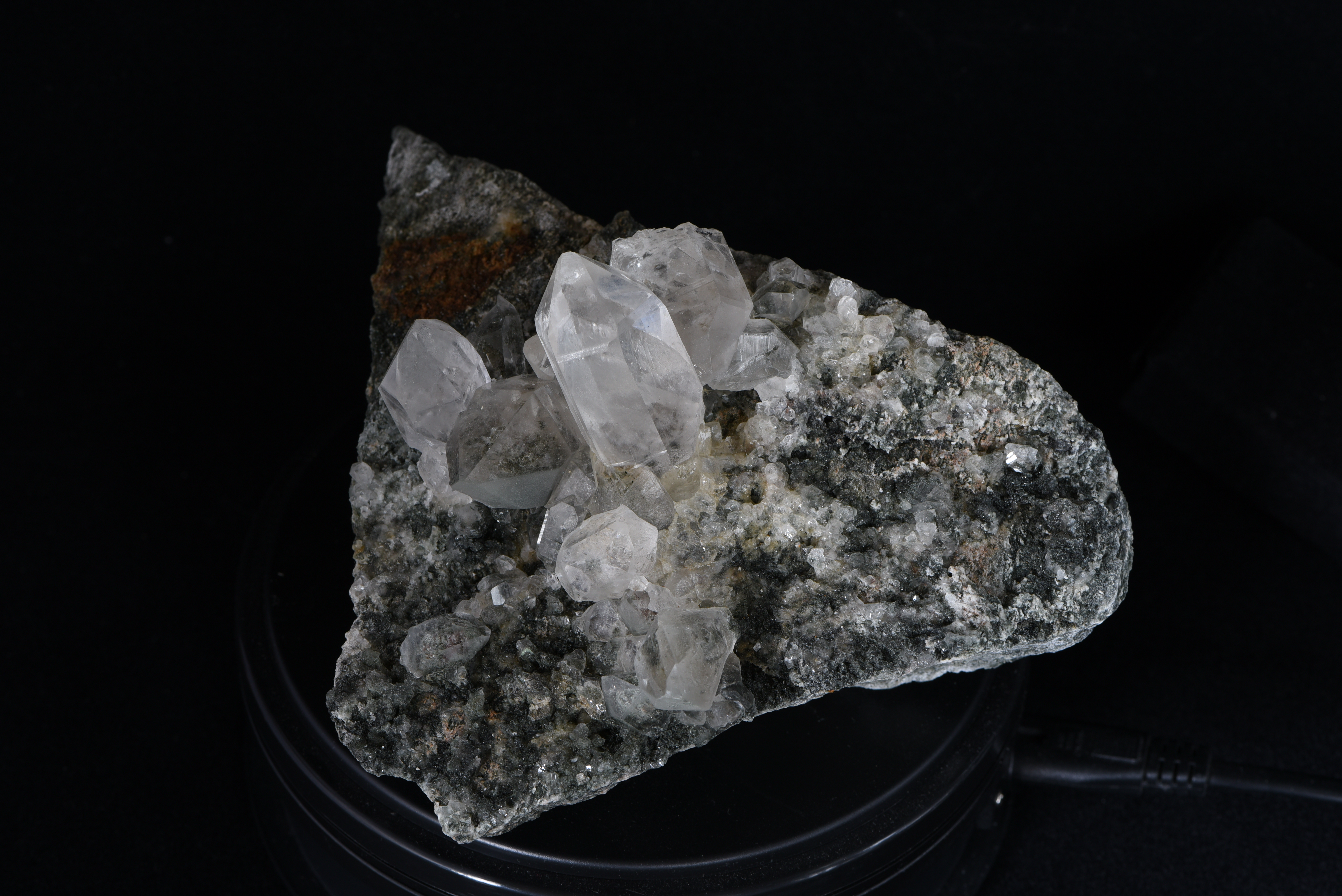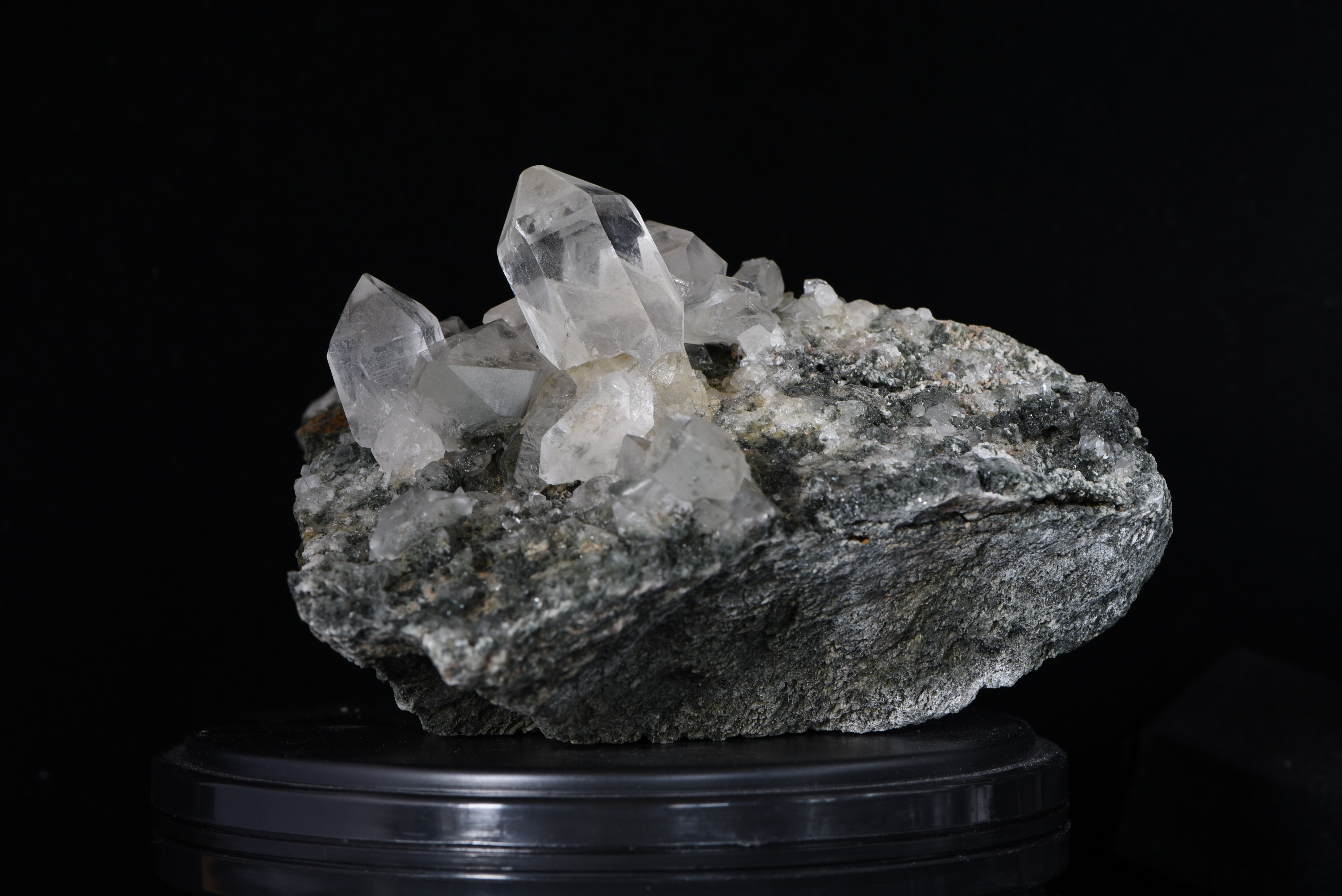 Der größte Bergkristall auf dieser Stufe misst 4,5 cm und die Matrix ist 17 cm x 12 cm groß. Der Stein wrude im Felbertal gefunden