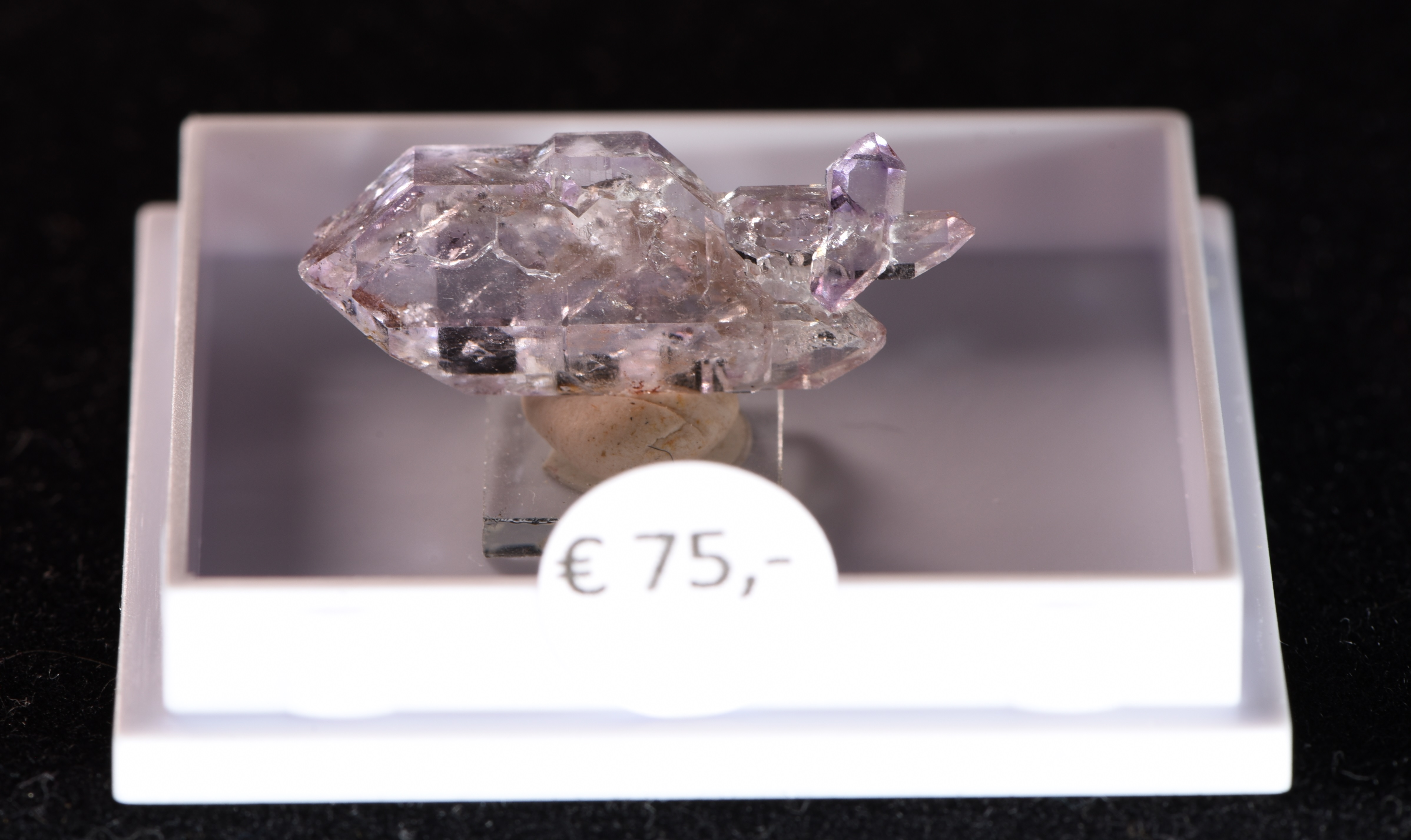 Dieser wunderschöne Amethyst Stufe wurde beim Saurüssel im Zillertal gefunden. Die außergewöhnliche 2,3 cm lange Stufe hat einen unfassbar faszinierenden Aufbau: Der Kristall ist auf einen abgesetzten Doppelender ausgebildet und auf der rechten Seite befindet sich sogar noch eine kleine Kreuzverwachsung, womit sie in jeder Daumennagel-Sammlung für Aufsehen sorgt! Die Stufe wird natürlich mit Deckel geliefert. Größe: 4 cm (Breite der Klarsichtdose) x 3,4 cm (Länge der Klarsichtdose) Fundort: Saurüssel (im Zillertal, Tirol)