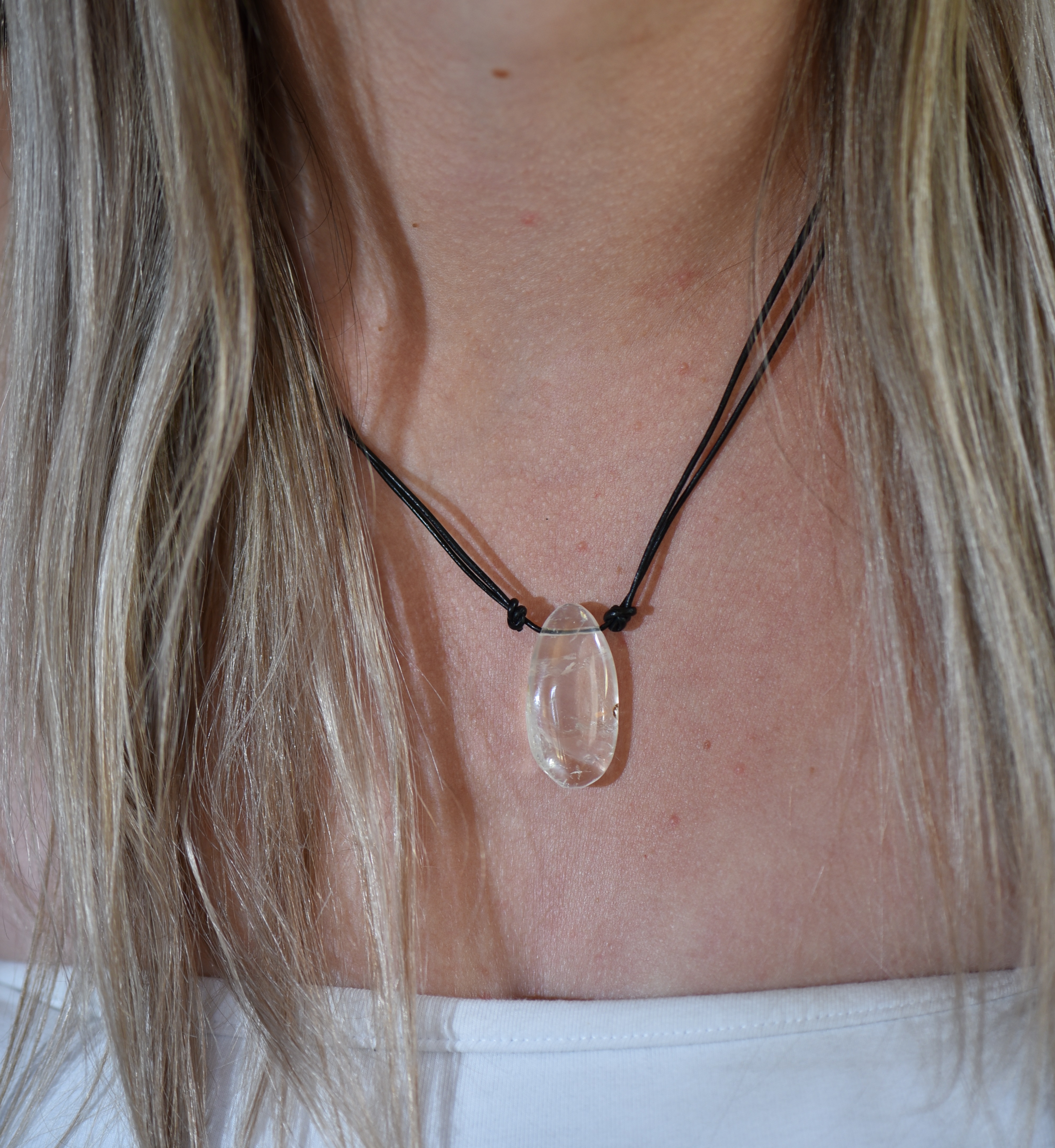 Eine Seltenheit aus dem Zillertal: Der Mondstein-Adular. Der Stein wurde beim Mörchnerkar gefunden. Der Anhänger ist an einem größenverstellbarem Lederband befestigt. Hinweis: die Bohrung des Anhängers ist extrem schmal - der Anhänger kann daher nur mit dem mitgeliefertem Lederband getragen werden.
