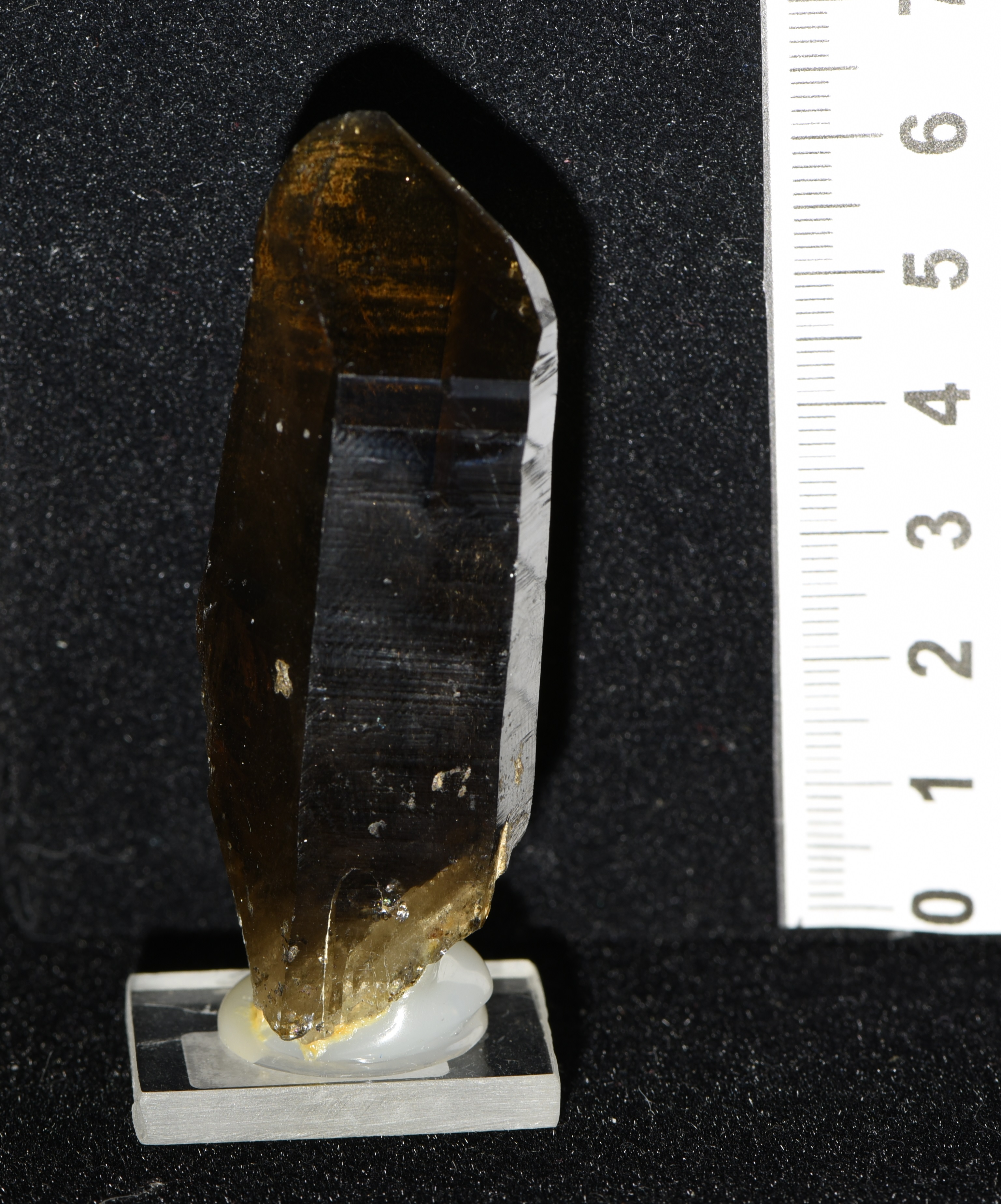 Diese 6,7 cm lange Rauchquarzspitze wurde beim Scharrn im Hollersbachtal (Hollersbach, Salzburg, Österreich) gefunden.