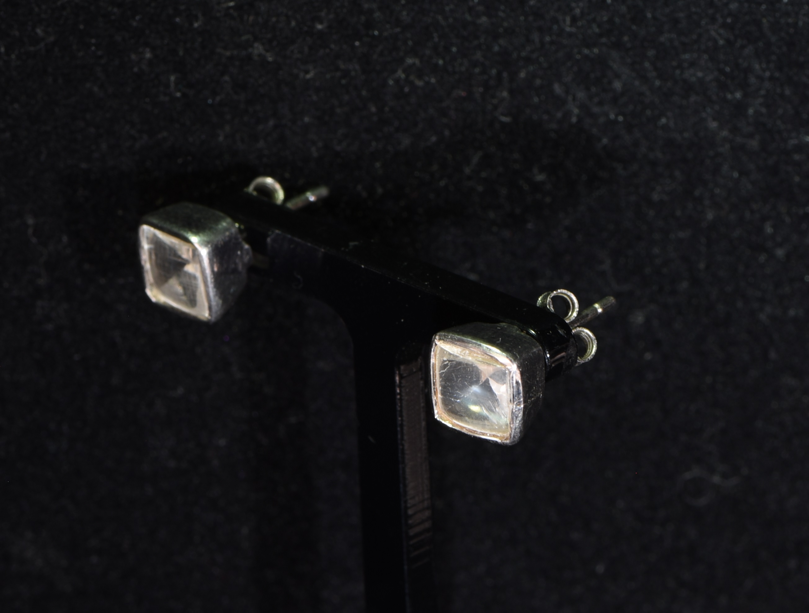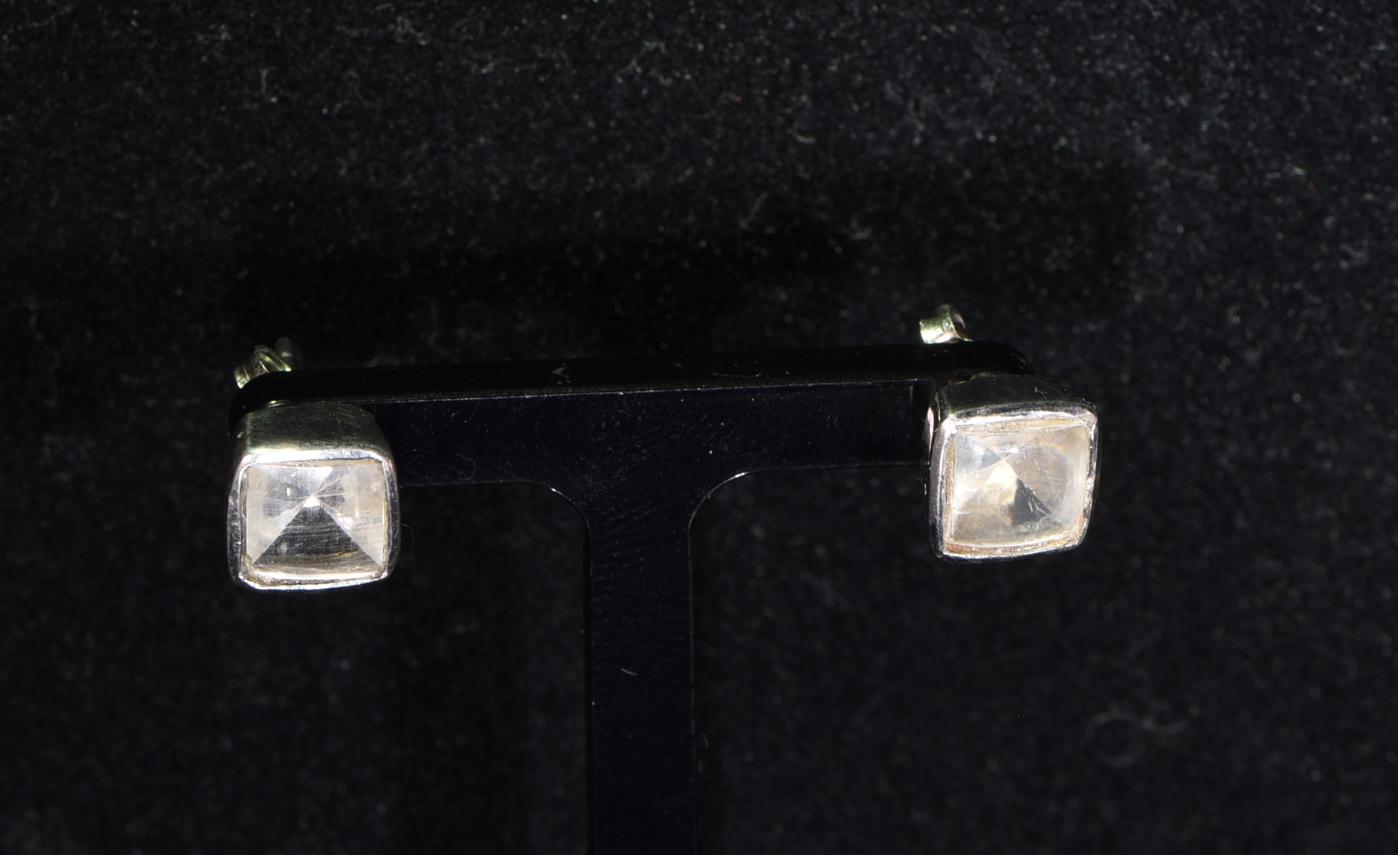 Der Mondsteinadular zeichnet sich durch seinen mystischen Schiller aus und unterscheidet sich dadurch optisch stark von einem Bergkristall. Die facettierten Zillertal-Mondsteine sind jeweils 7 mm x 7 mm groß und haben Top-Qualität. Die Randfassung besteht aus Silber und ist hinten offen. Die Steine wurden im Zillertal (Tirol, Österreich) gefunden.