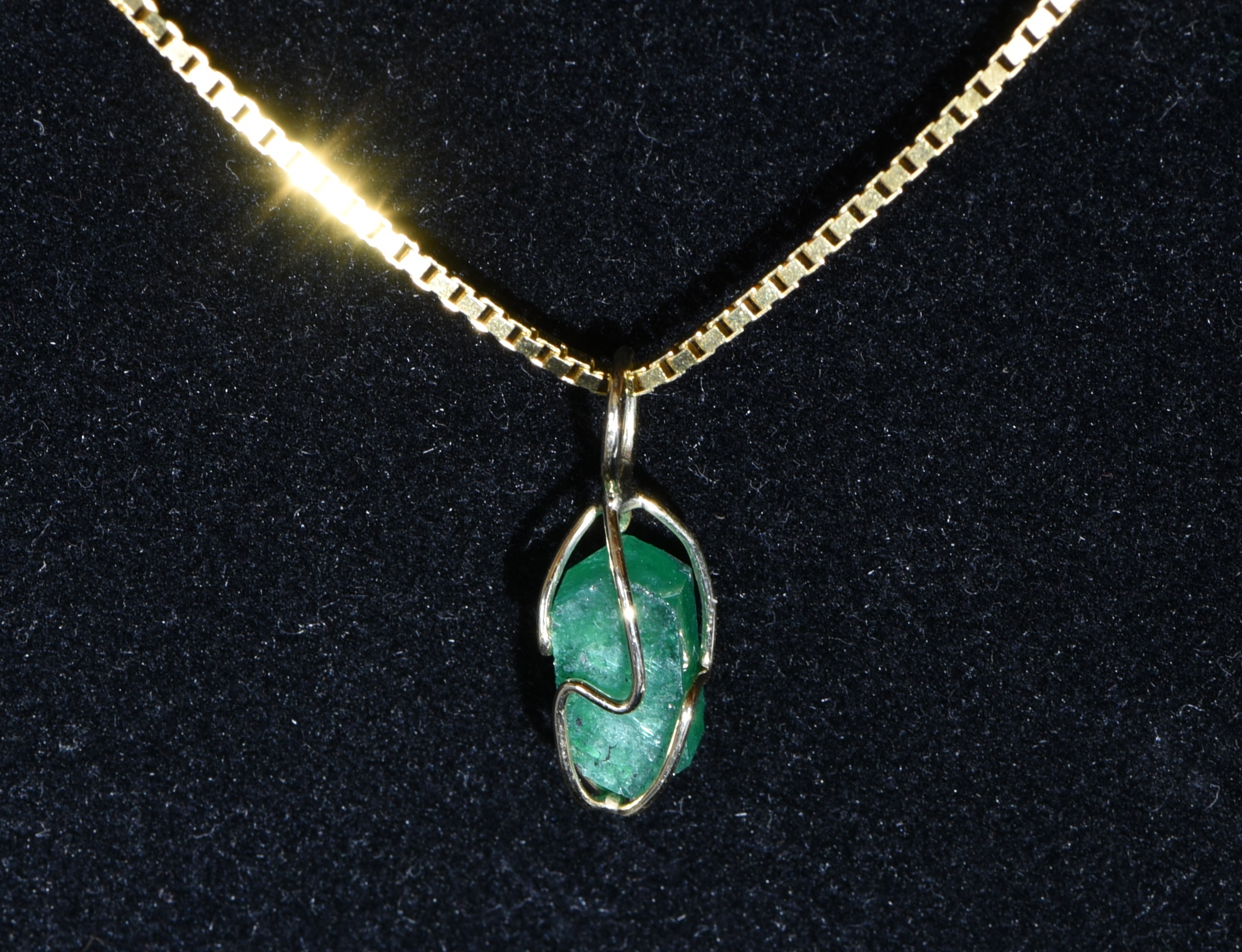 Ein naturbelassener, 9mm x 6mm großer Smaragd mit TOP-Qualität wurde in ein Goldkörberl eingefasst. Die Naturflächen des Smaragdquerschnitts sind nachgeschliffen und der Stein hat eine unglaubliche Transparenz kombiniert mit einer leuchtend grünen Farbe! Der Stein wurde im Smaragdbergbau im Habachtal (Bramberg, Salzburg, Österreich) gefunden.