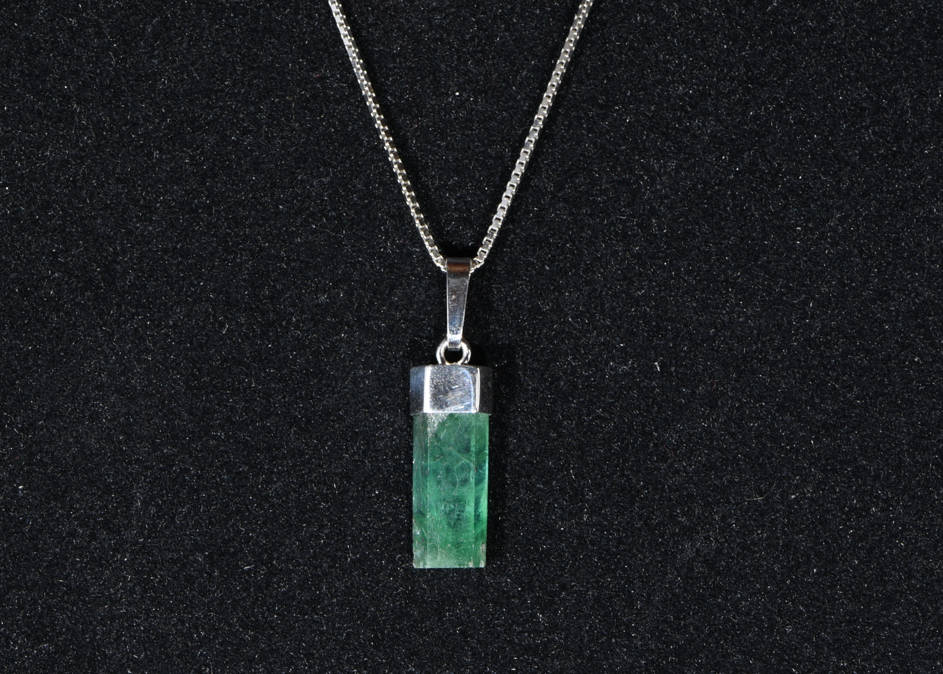 Ein wunderbarer Smaragdanähänger in Weißgold! Der sichtbare Teil des Smaragdes ist 13 mm lang, hat eine gute Qualität und ist in Weißgold eingefasst. Der Stein wurde im Smaragdbergbau im Habachtal (Bramberg, Salzburg, Österreich) gefunden. Durch die Weißgoldschienen oben und unten ist der Smaragd besser geschützt.