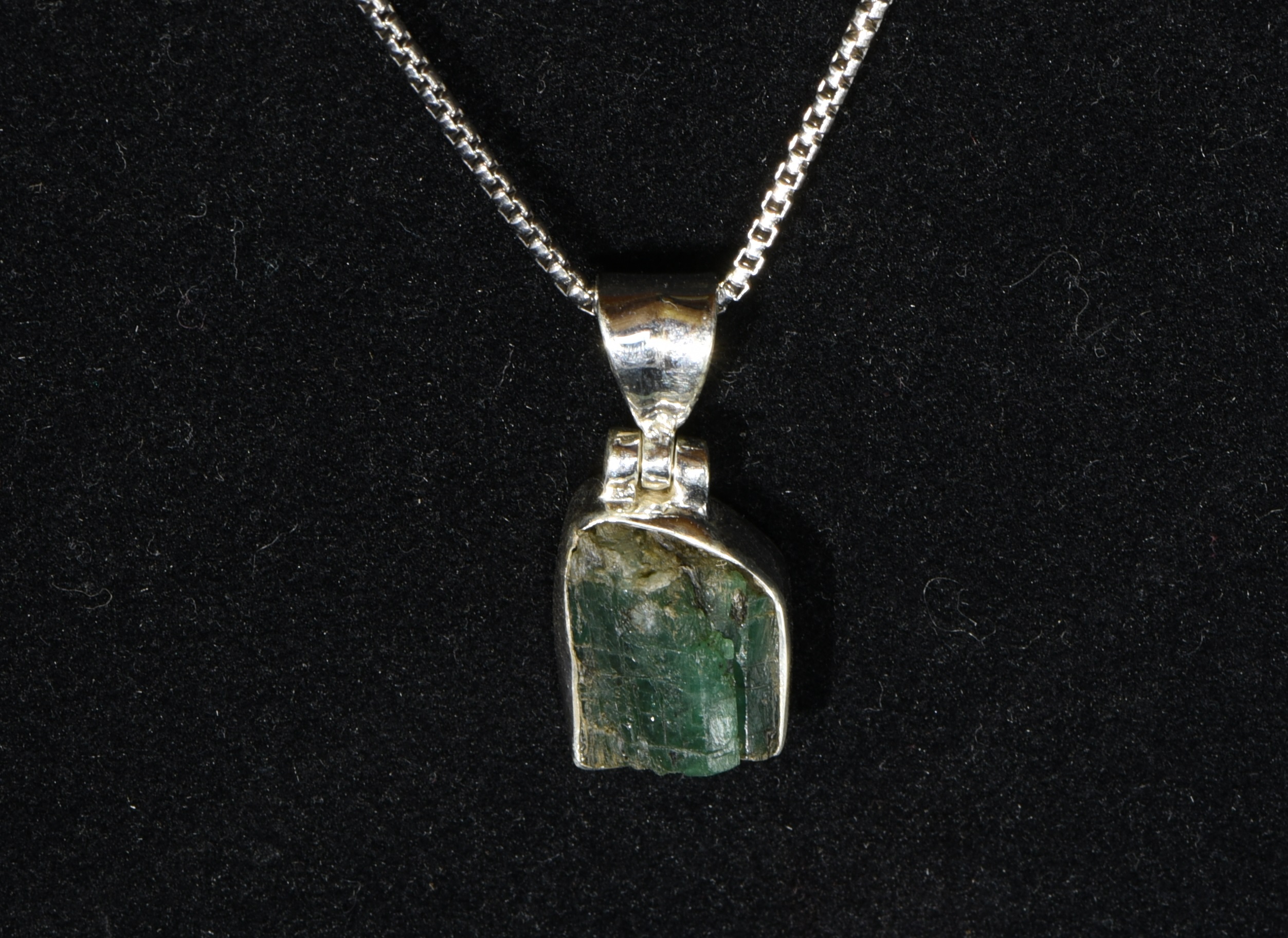 Der Smaragd hat eine sehr schöne, dunkelgrüne Farbe - an der Oberseite ist noch das Muttergestein (Biotit-Glimmerschiefer) zu sehen. Der Smaragd misst stolze 1,5 cm und ist 1,2 cm dick. Der Stein wurde im Smaragdbergbau im Habachtal (Bramberg, Salzburg, Österreich) gefunden und in Silber eingefasst (Randfassung mit einer hinten geschlossenen Silberplatte).