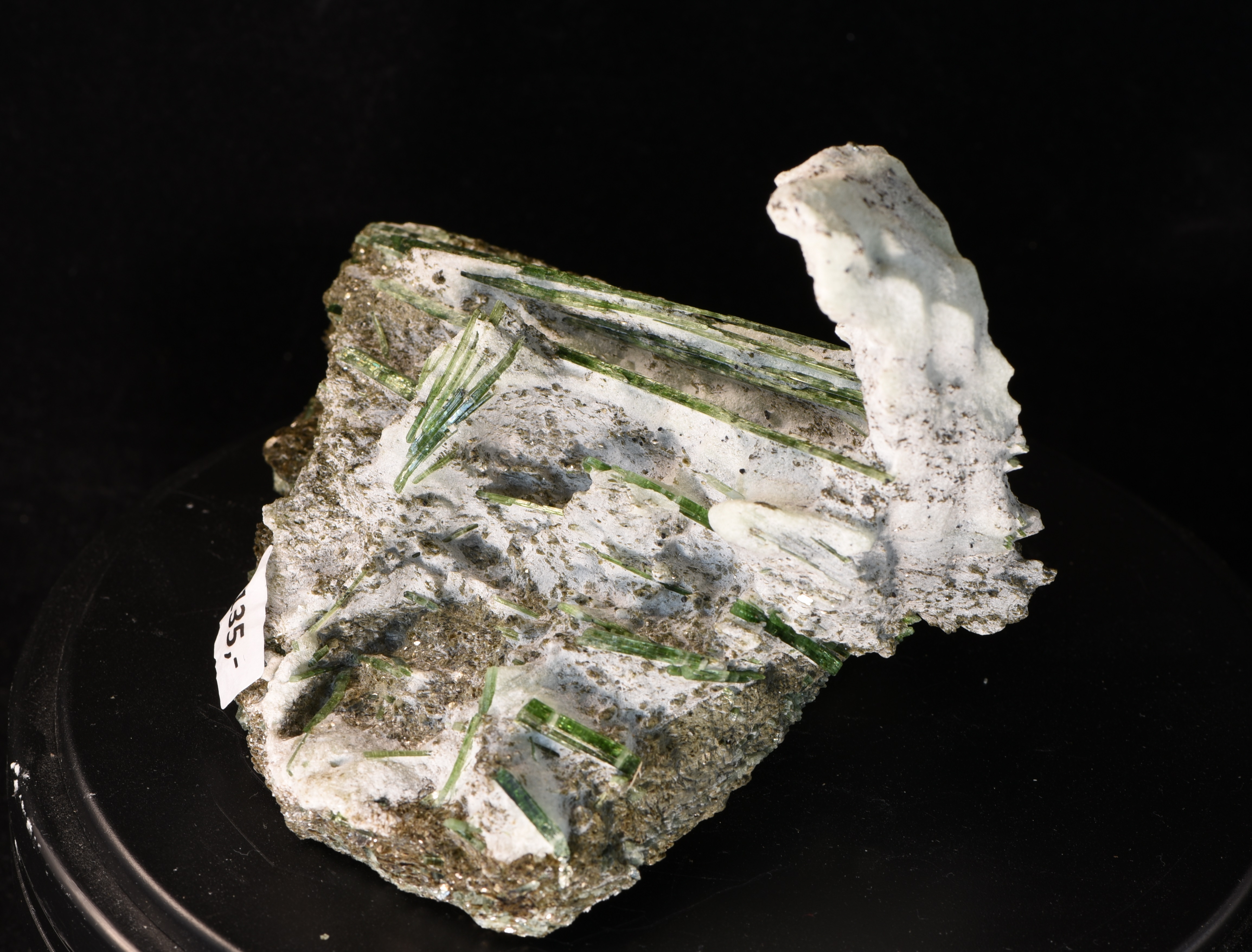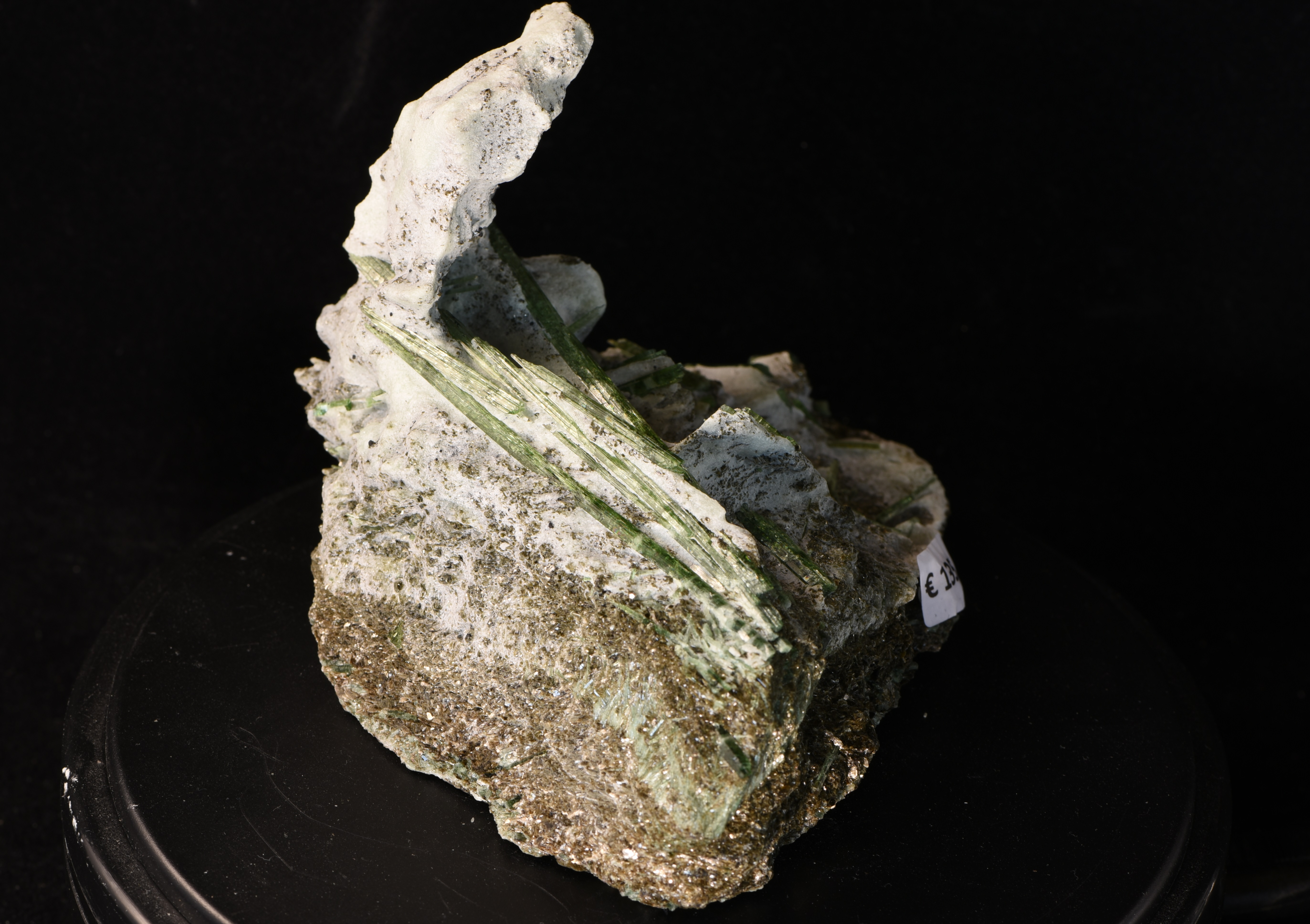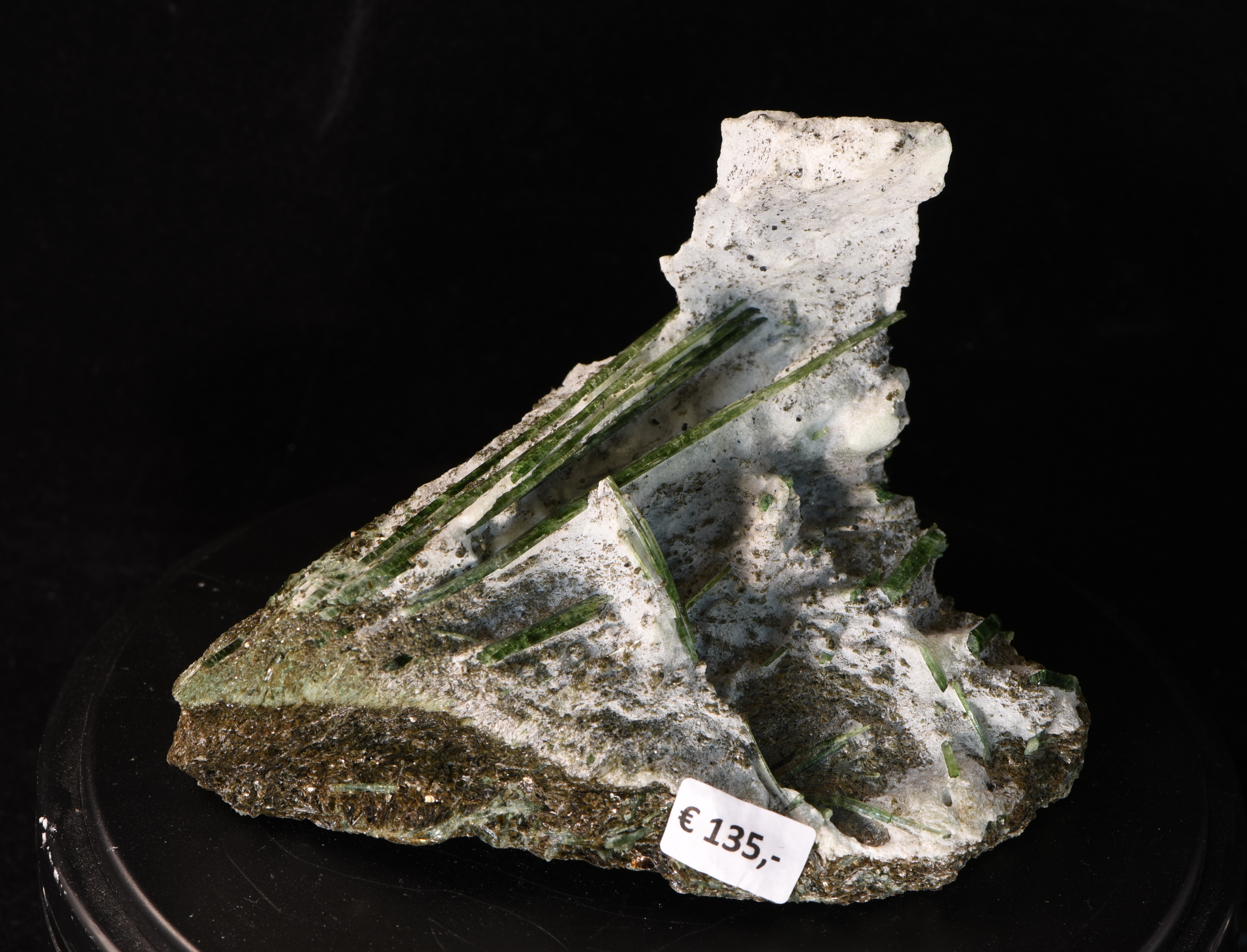 Auf dieser Stufe sitzen unzählige Smaragdit-Nadeln - diese wurden auf der Vorder- sowie auf der Rückseite freigelegt. Die längste Nadel misst 9,5 cm.