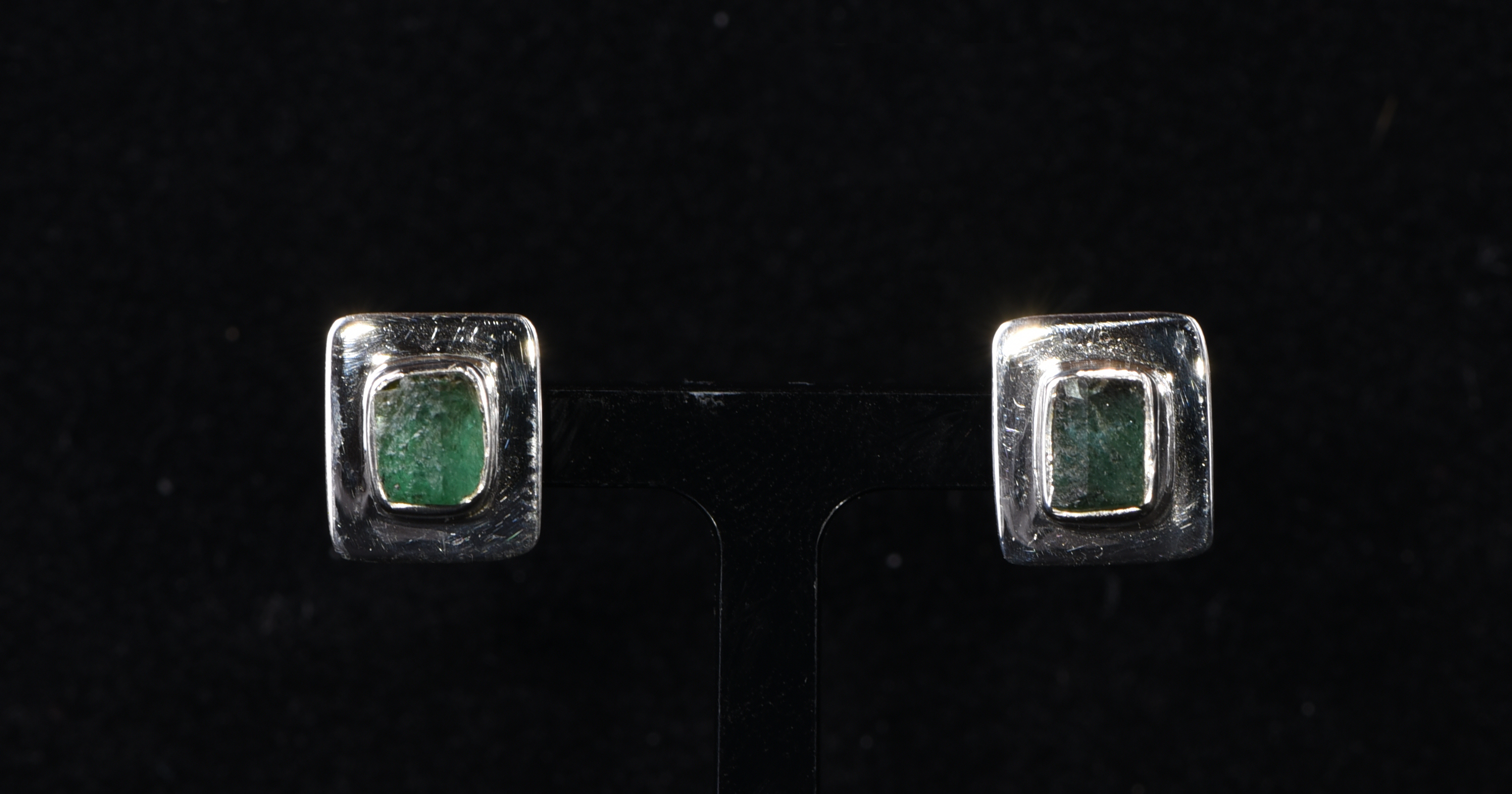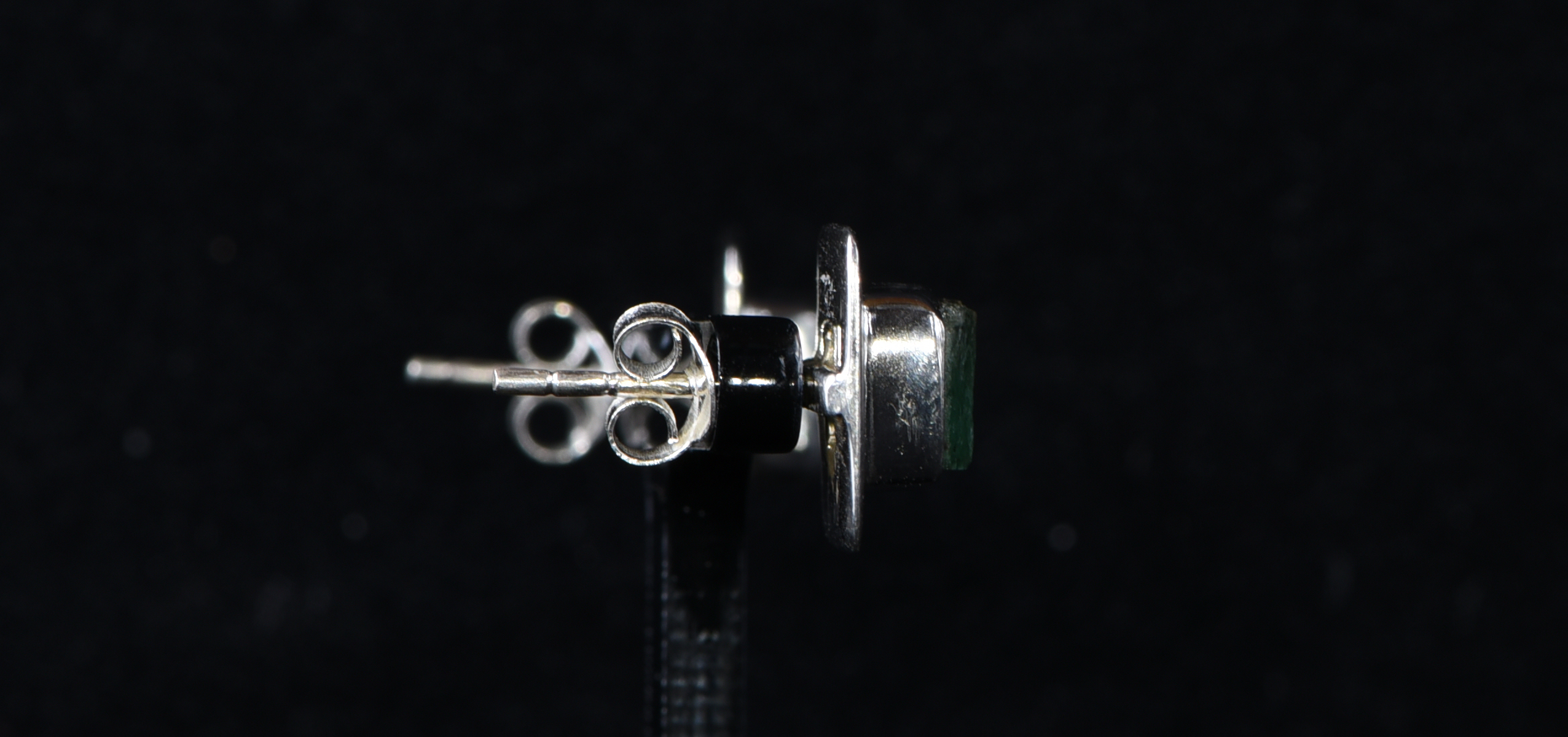 Die beiden Smaragde haben eine sehr gute Qualität, sind naturbelassen und in Silber eingefasst. Die Kristalle sind jeweils 0,6 cm lang. Die Steine wurden im Smaragdbergbau im Habachtal (Bramberg, Salzburg, Österreich) gefunden.