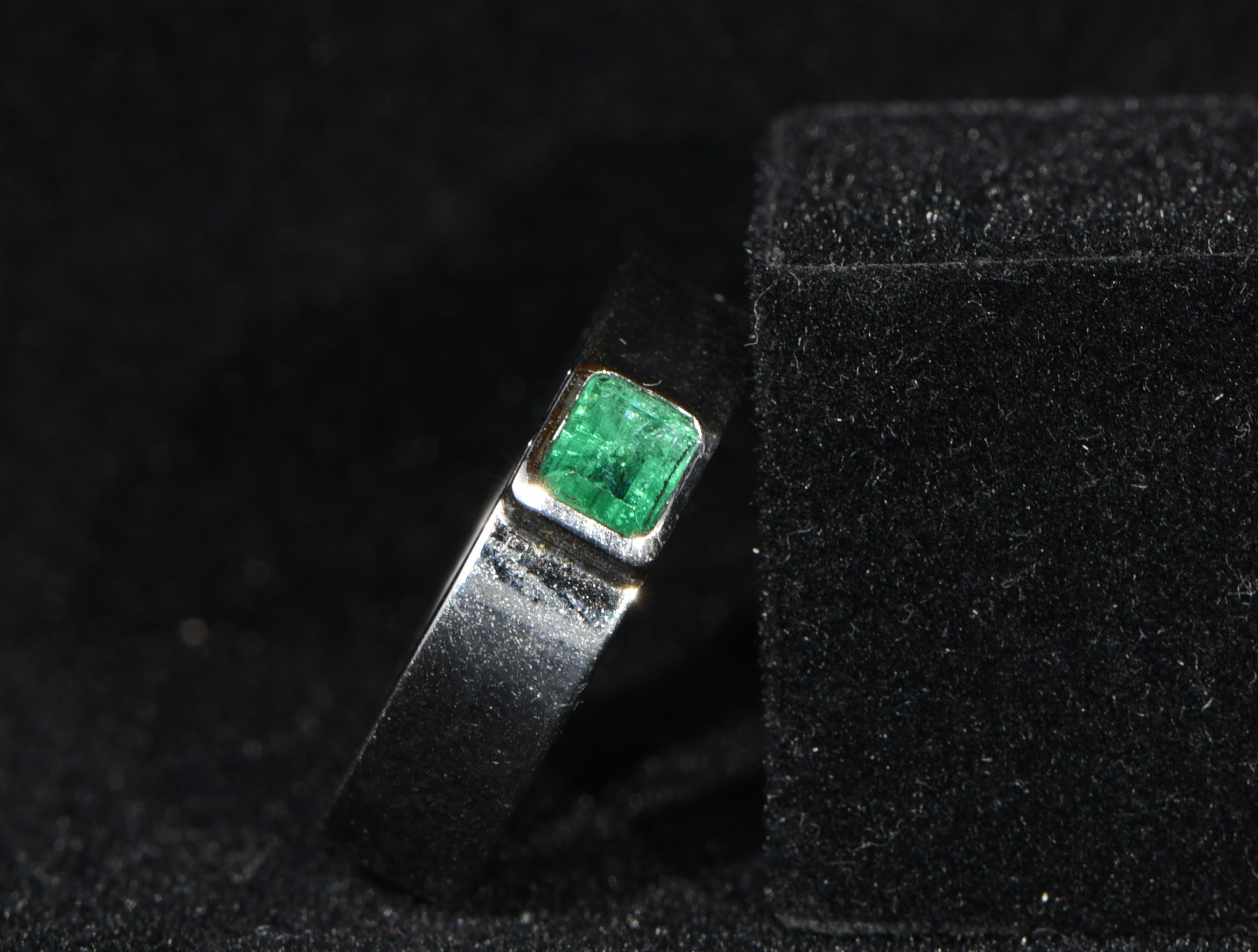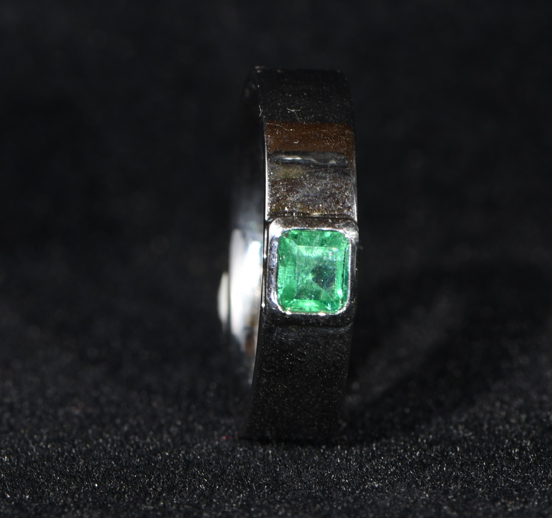 Ein facettierter Smaragd mit einer Größe von 6 mm x 5 mm wurde in einen klassischen Weißgoldring eingefasst. Der Smaragd wurde im Smaragdbergbau im Habachtal (Bramberg, Salzburg, Österreich) gefunden.