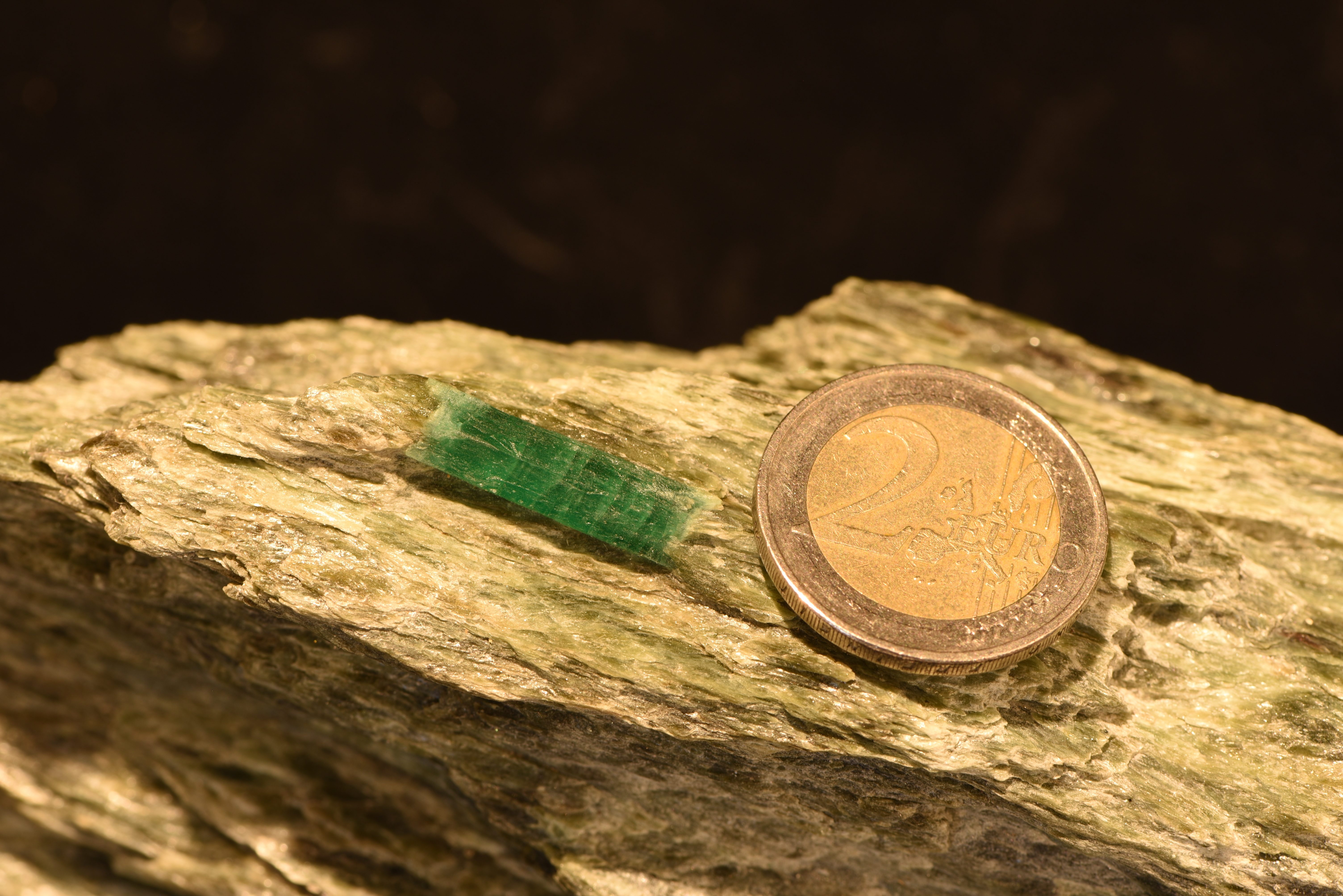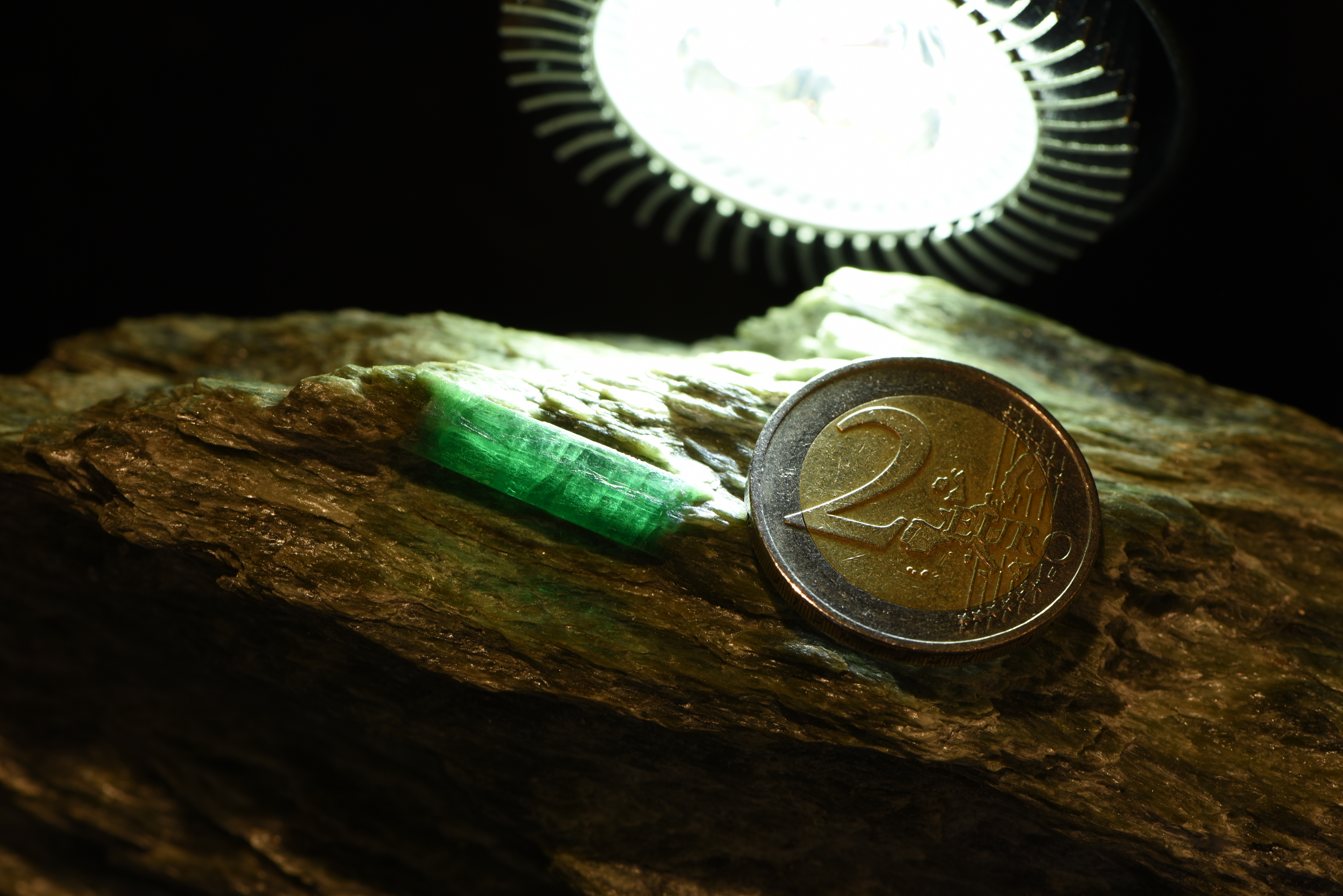 Der Stein wurde im Smaragdbergbau im Habachtal (Bramberg, Salzburg, Österreich) gefunden.