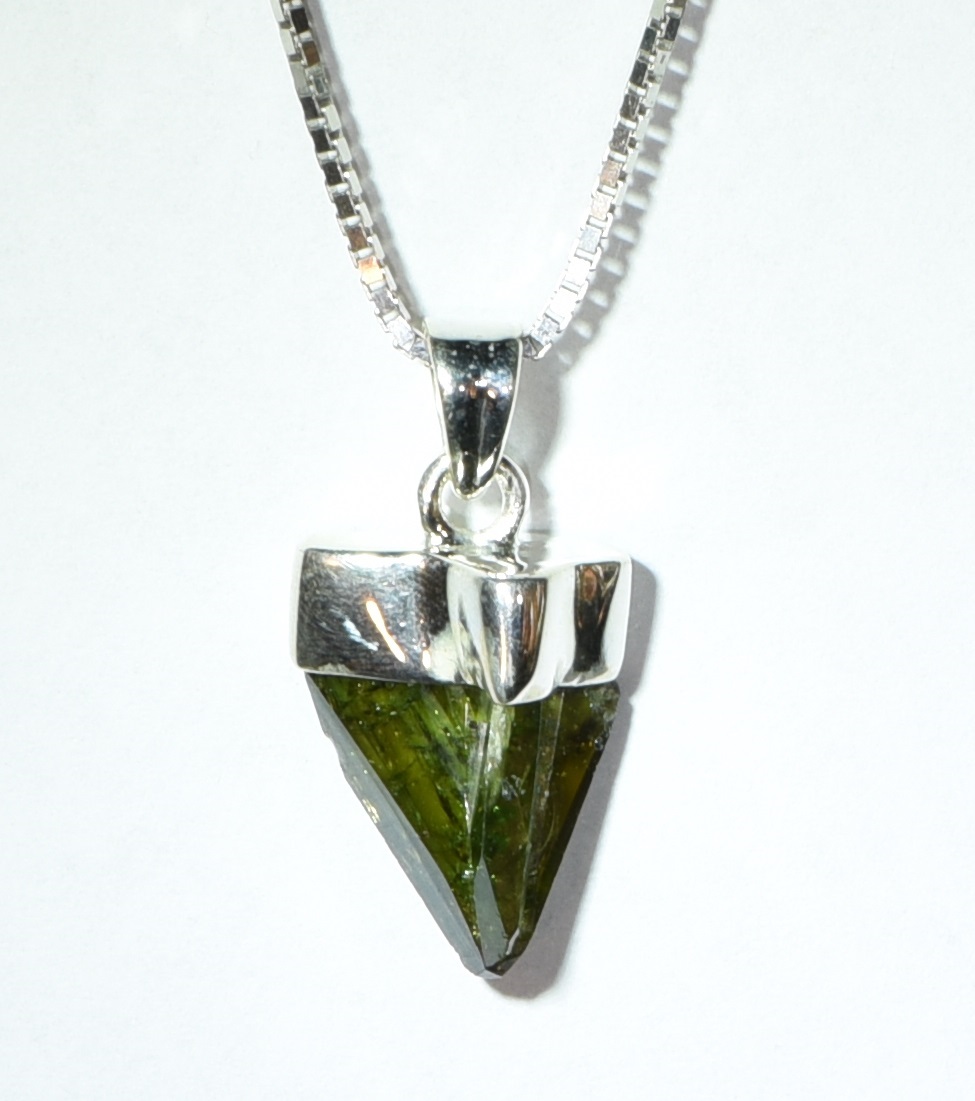 Ein wunderschöner Sphen (Titanit) eingefasst in hochwertigen Silber. Der Sphen wurde bei der Wageralm im Felbertal (Mittersill, Salzburg Österreich) gefunden. Mit seiner grün leuchtenden transparenten Farbe und ein paar dunkelgrünen Einschlüssen zählt der Sphen zu den seltensten Mineralien. Wichtig: Die Silberhalskette ist nicht im Preis enthalten- Scrollen Sie für eine passende Halskette nach unten.