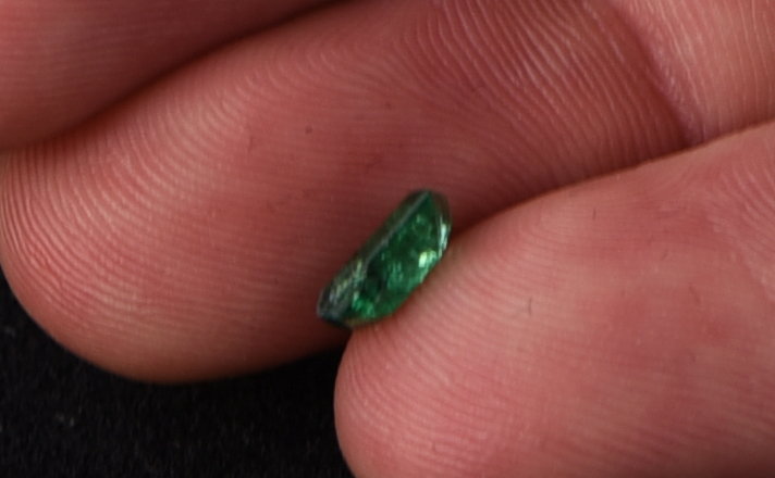 Dieser Smaragd hat eine extrem gute Farbe - die Biotit-Einschlüsse machen den geschliffenen Stein noch lebhafter. Fundort ist die Smaragdmine im Habachtal (Bramberg, Salzburg, Österreich).