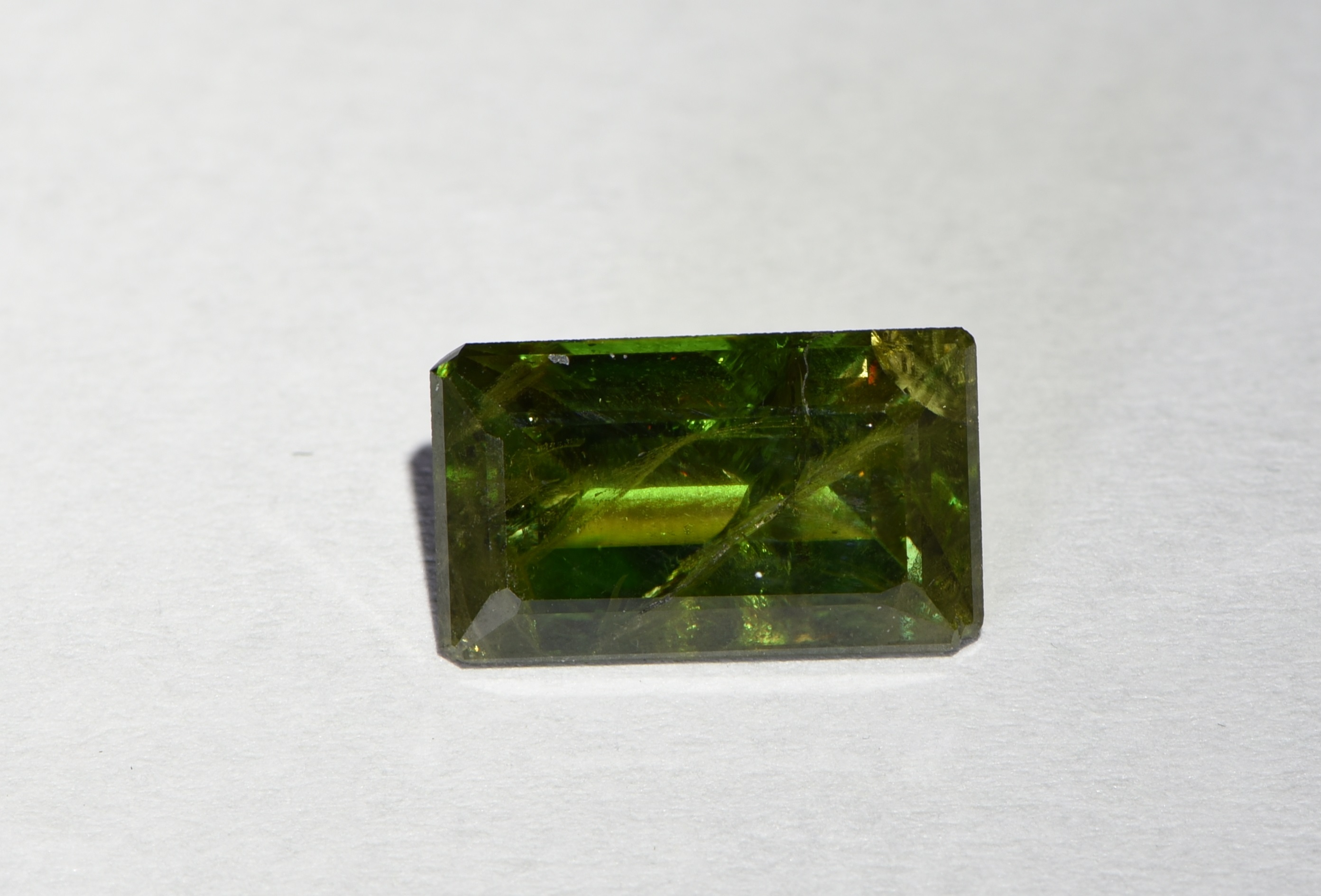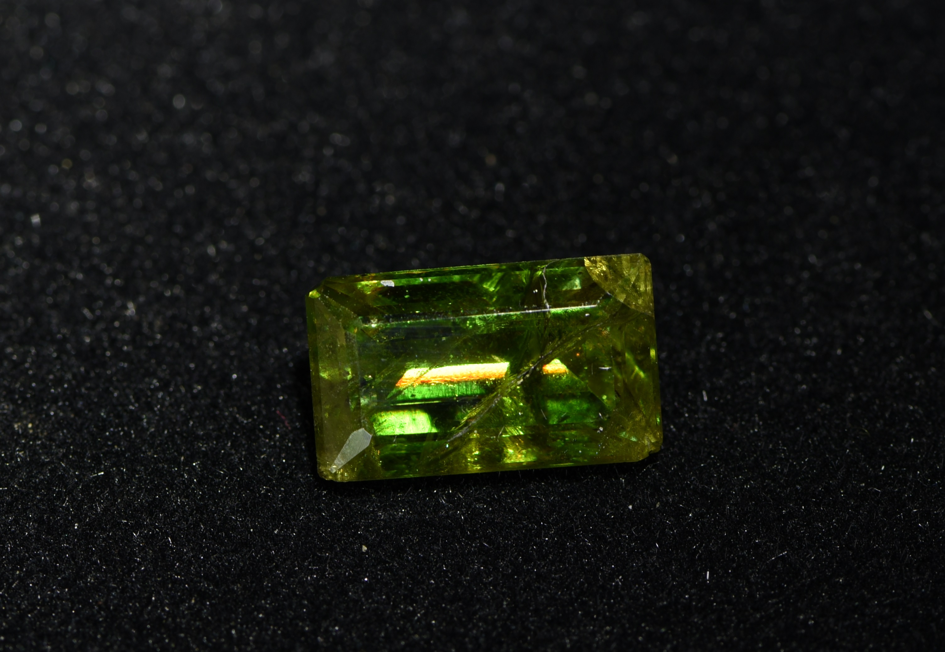 Ein facettierter Tiatnit-Kristall (Sphen). Dieser Stein wäre ideal zur Verarbeitung in ein Schmuckstück oder eben als Sammelobjekt geeignet.